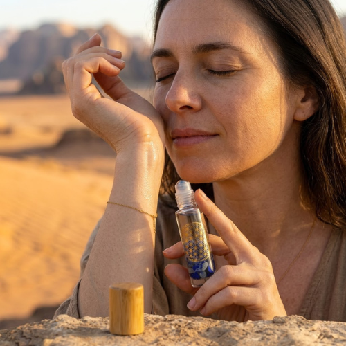 מומלץ למרוח את הבושם על מפרקי הידיים, הצוואר, העין השלישית, מרכז הלב, או כל מקום בגוף שמבקש את האנרגיה של עוצמה ותעוזה. השימוש ברולר הלאפיס מזמן מגע מלטף שמחבר את האיכויות של האבן עם ניחוח עץ הסנדלווד, המור והפלפל השחור – ישירות לגופנו ולתודעתנו. מגע קטן על מפרקי הידיים, נגיעה במרכז הלב או בנקודת העין השלישית – והתדר מתחיל להדהד. הניחוח מחזיר אותך אל ה"כלי", אל הגוף הפיזי, אל המקום (הסמכות הפנימית) שבו הריפוי הוא פקודה תאית.